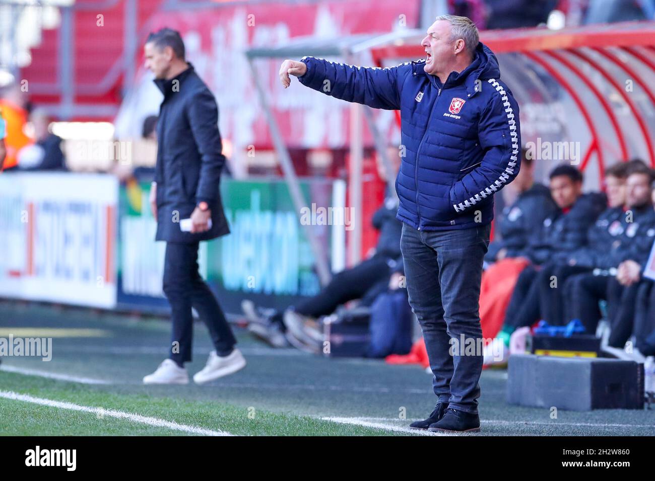 Enschede Netherlands October 24 Coach Ron Jans Of Fc Twente Gestures During The Dutch Eredivisie Match Between Fc Twente And N E C At De Grolsch Veste On October 24 2021 In Enschede